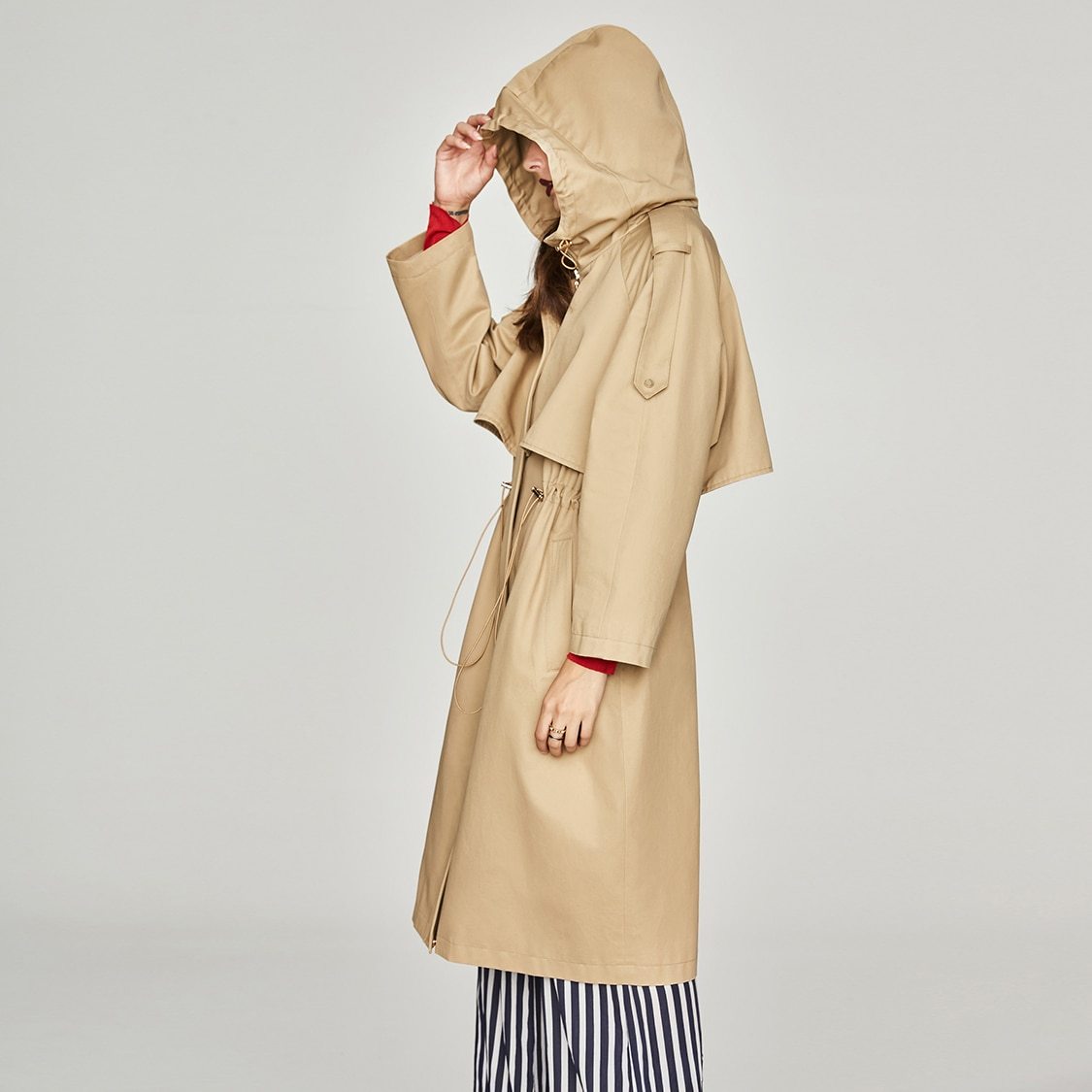 2019 Autumn New Casual Women's Cotton X-Long Hooded Trench Coat
