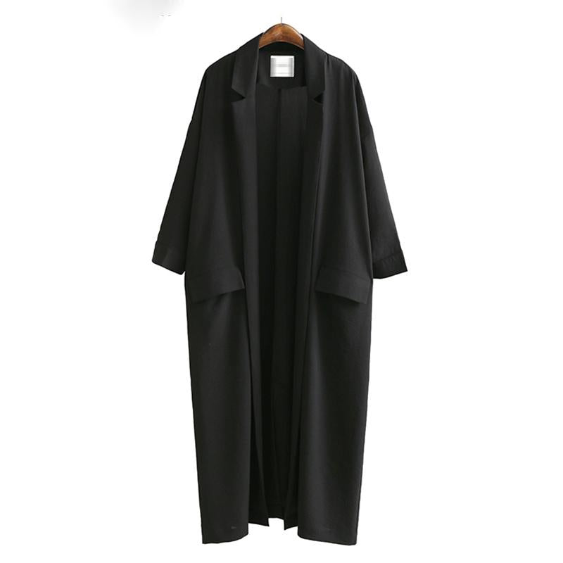 2019 Loose Women's Windbreaker Spring Casual Turn-down Collar Pockets Black Thin Coat Jacket Female Outwear