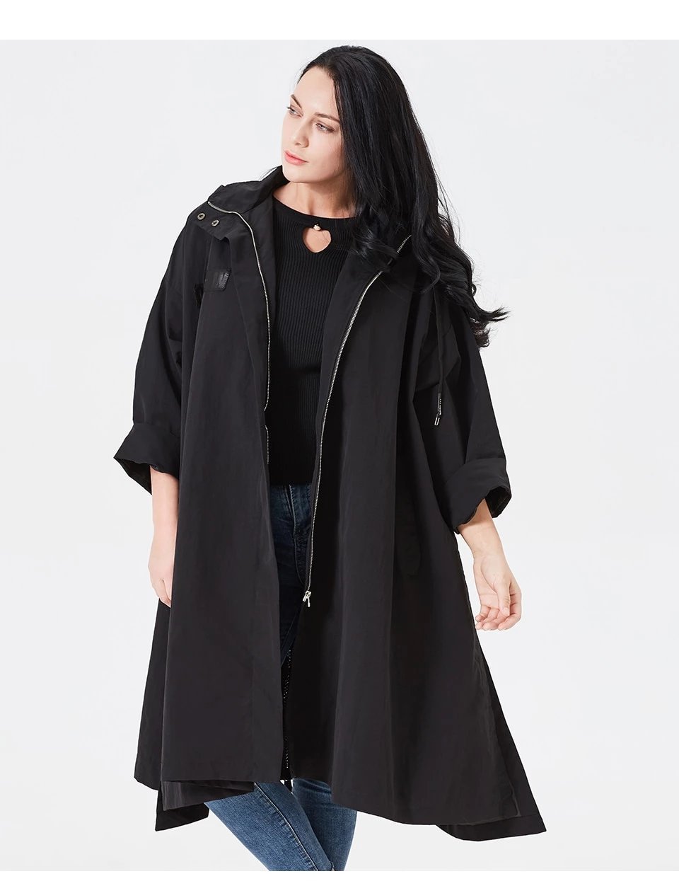 2019 Trench Coat Women Hooded High Quality Windbreaker Fashion Gothic Long Loose Suitable