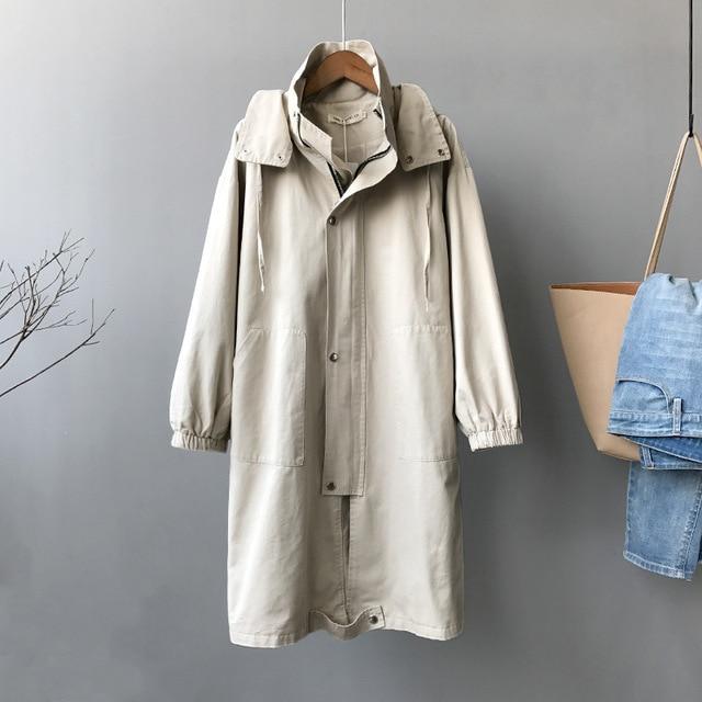 Autumn Woman Coat Hooded Single Breasted Slim Padded Windbreaker Long Chic Korean Overcoat