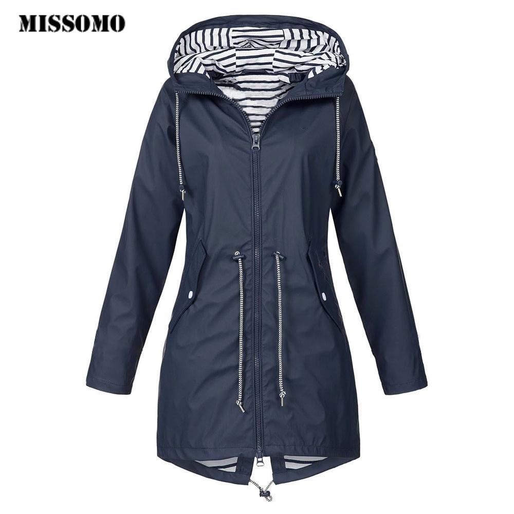 Women 2019 Solid Rain Jacket Outdoor Jackets Waterproof Hooded Raincoat